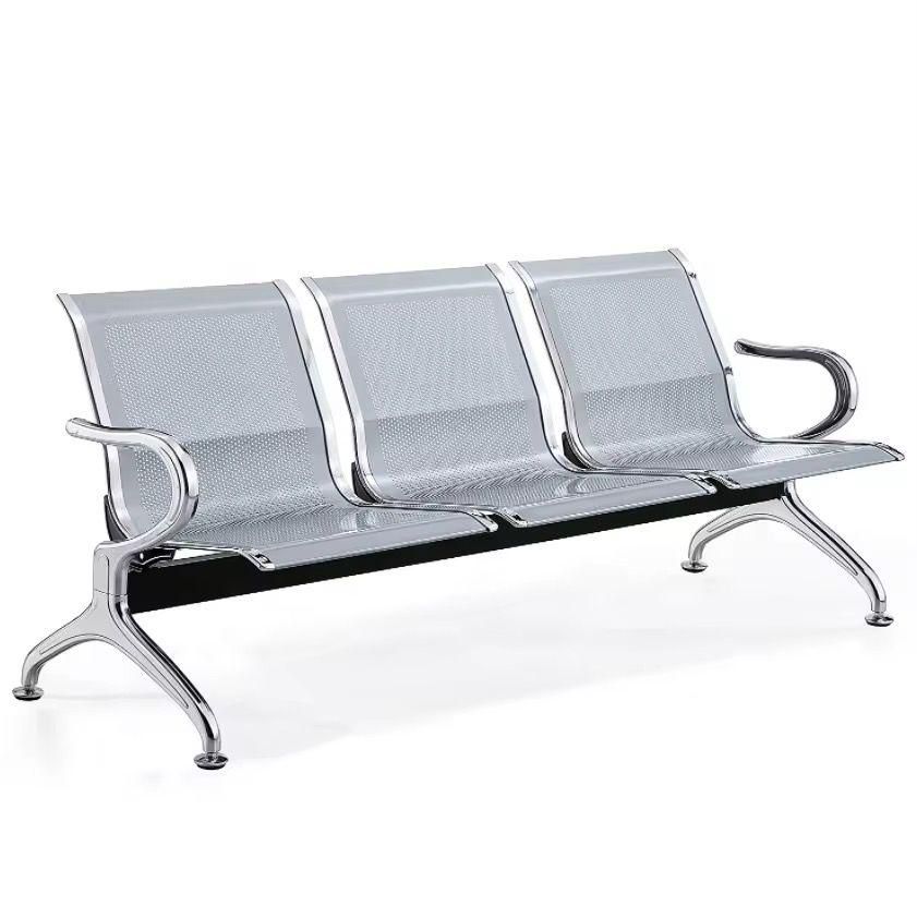 THIS IS A HOSPITAL ACCOMPANYING 3 SEATER CHAIR DURABLY MADE OF STAINLESS STEEL MATERIAL .